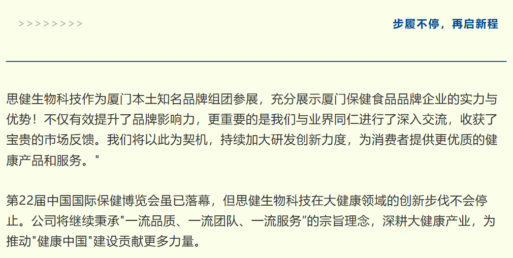 圓滿落幕 | 思健生物科技在第22屆中國(guó)國(guó)際保健博覽會(huì)收獲豐碩成果